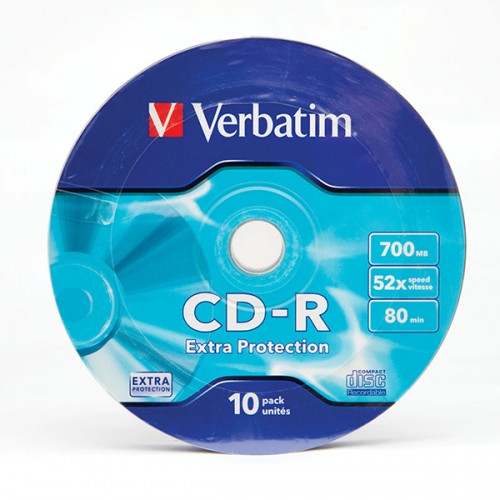 Verbatim CD-R, 43725, 10-pack, 700MB, Extra Protection, 52x, 80min., 12cm, wrap, Standard, pro archivaci dat