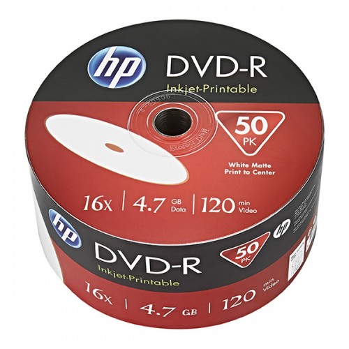 HP DVD-R, DME00070WIP-3, 69302, 50-pack, 4.7GB, 16x, 12cm, bulk, Printable, pro archivaci dat