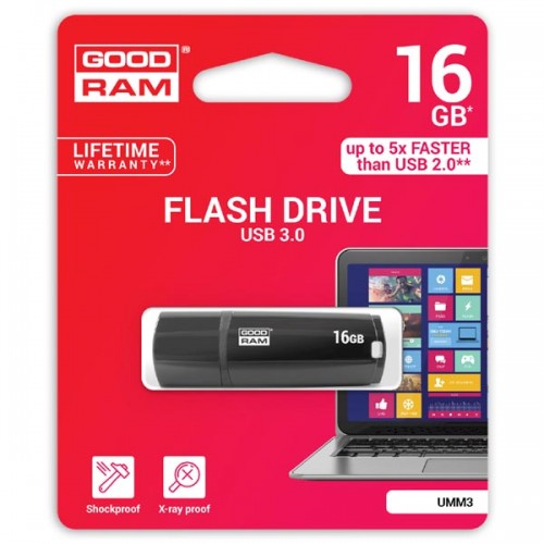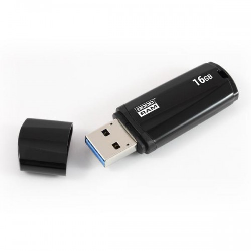 Goodram USB flash disk, USB 3.0 (3.2 Gen 1), 16GB, UMM3, černý, UMM3-0160K0R11, USB A, s krytkou