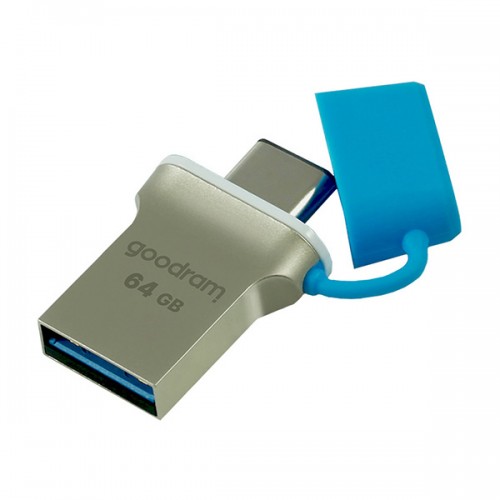 Goodram USB flash disk OTG, USB 3.0 (3.2 Gen 1), 64GB, ODD3, modrý, ODD3-0640B0R11, USB A / USB C, s krytkou