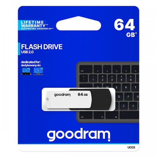 Goodram USB flash disk, USB 2.0, 64GB, UC02, černý, UCO2-0640KWR11, USB A, s otočnou krytkou