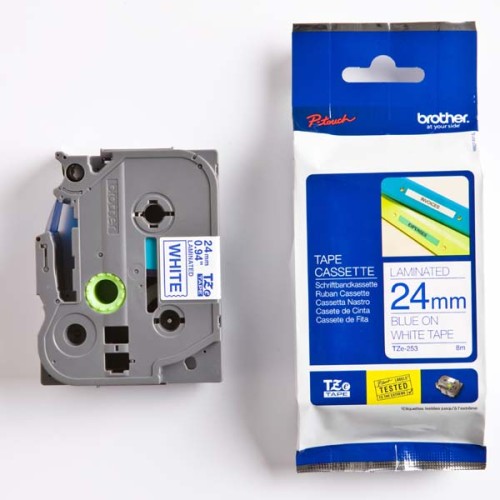 Brother originální páska do tiskárny štítků, Brother, TZE-253, modrý tisk/bílý podklad, laminovaná, 8m, 24mm
