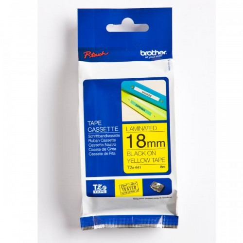 Brother originální páska do tiskárny štítků, Brother, TZE-641, černý tisk/žlutý podklad, laminovaná, 8m, 18mm