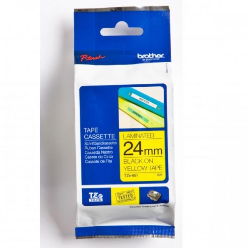 Brother originální páska do tiskárny štítků, Brother, TZE-651, černý tisk/žlutý podklad, laminovaná, 8m, 24mm