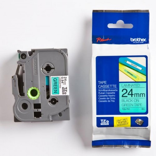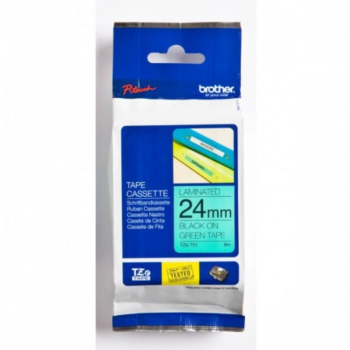 Brother originální páska do tiskárny štítků, Brother, TZE-751, černý tisk/zelený podklad, laminovaná, 8m, 24mm