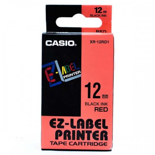 Casio originální páska do tiskárny štítků, Casio, XR-12RD1, černý tisk/červený podklad, nelaminovaná, 8m, 12mm