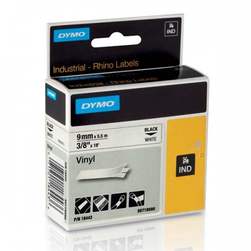 Dymo originální páska do tiskárny štítků, Dymo, 18443, S0718580, černý tisk/bílý podklad, 5.5m, 9mm, RHINO vinylová profi D1
