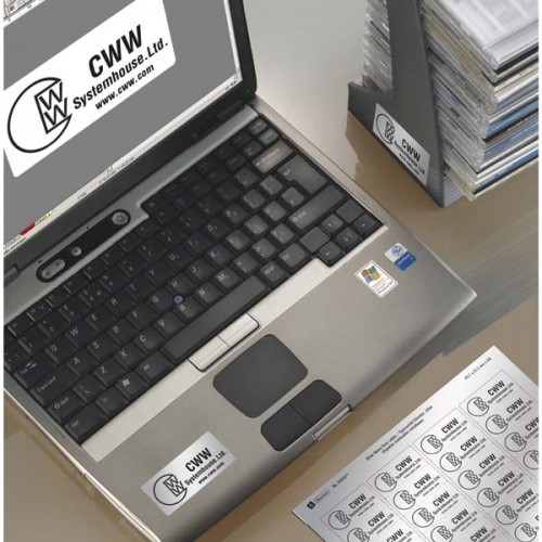 Když pracujete ve velké společnosti, jak víte, který počítač patří na který stůl? A co když se stěhujete? Můžete si být jisti, že vše skončí na správném místě? Označování vaší elektroniky je řešením. Počítače a tiskárny jsou drahá zařízení. Proto potřebujete kvalitní etikety, které je nepoškodí. A tomu přesně odpovídají tyto stříbrné etikety. Můžete si vytisknout vlastní text, jméno oddělení nebo referenční kód. K dispozici jsou v tomto rozměru nebo s 48 etiketami na archu.