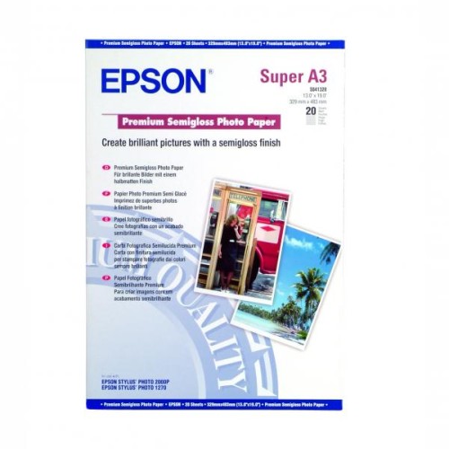 Epson Premium Semigloss Photo Paper, foto papír, pololesklý, bílý, Stylus Photo 1270, 2000P, A3+, 251 g/m2, 20 ks, C13S041328, ink