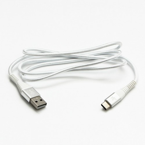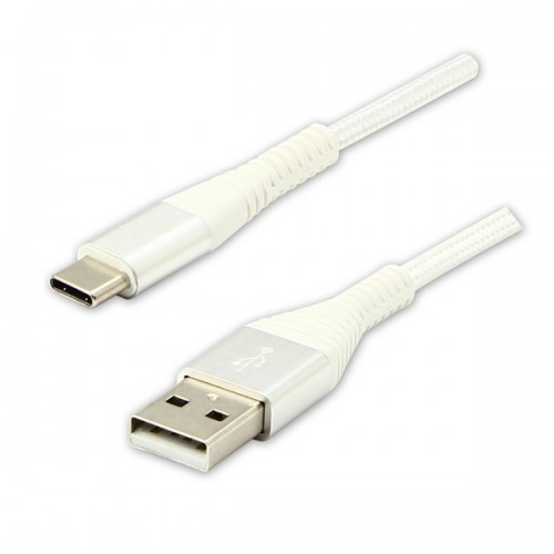 Kabel USB (2.0), USB A M- USB C M, 1m, 480 Mb/s, 5V/3A, bílý, Logo, box, nylonové opletení, hliníkový kryt konektoru