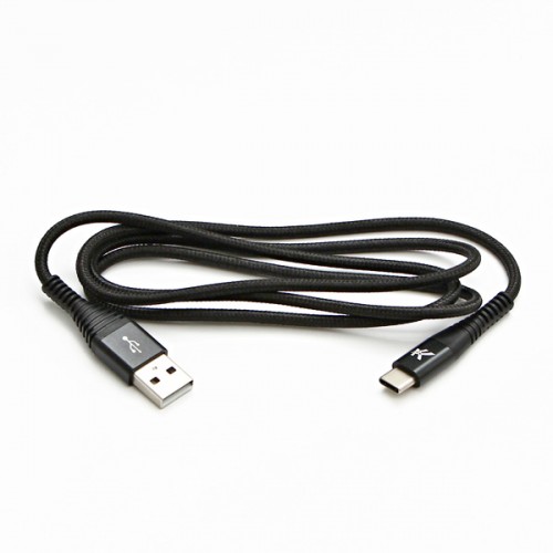 Kabel USB (2.0), USB A M- USB C M, 2m, 480 Mb/s, 5V/3A, černý, Logo, box, nylonové opletení, hliníkový kryt konektoru