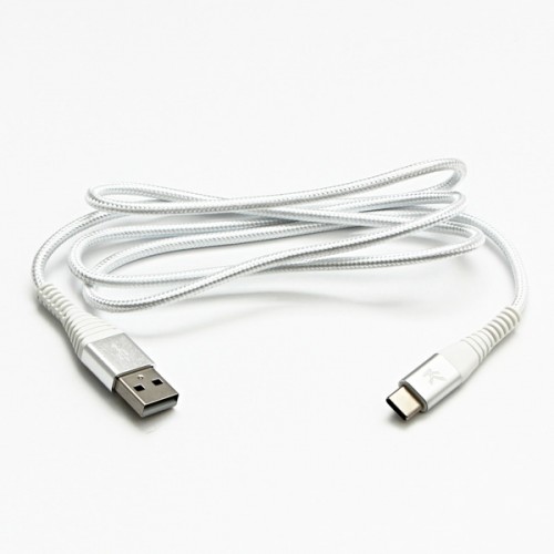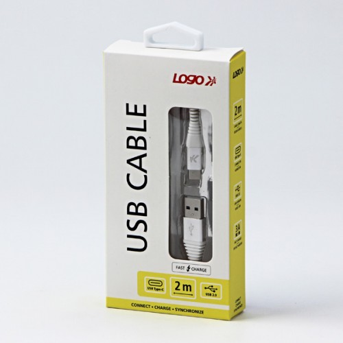 Kabel USB (2.0), USB A M- USB C M, 2m, 480 Mb/s, 5V/3A, bílý, Logo, box, nylonové opletení, hliníkový kryt konektoru
