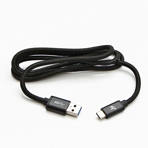 Kabel USB (3.2 gen 1), USB A M- USB C M, 1m, 5 Gb/s, 5V/3A, černý, Logo, box, nylonové opletení, hliníkový kryt konektoru