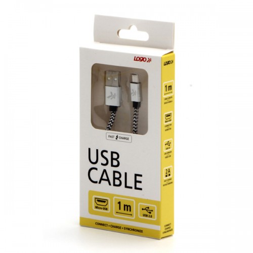 Kabel USB (2.0), USB A M- USB micro B M, 1m, 480 Mb/s, 5V/2A, stříbrný, Logo, box, nylonové opletení, hliníkový kryt konektoru