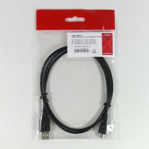 Kabel USB (2.0) - USB A M - microUSB M - 1m, černý, LOGOUSB 2.0 Kabel pro připojení zařízení s konektorem microUSB. Pomocí tohoto kabelu tak můžete připojit například fotoaparáty, mobilní telefony, MP3 přehrávače a další.