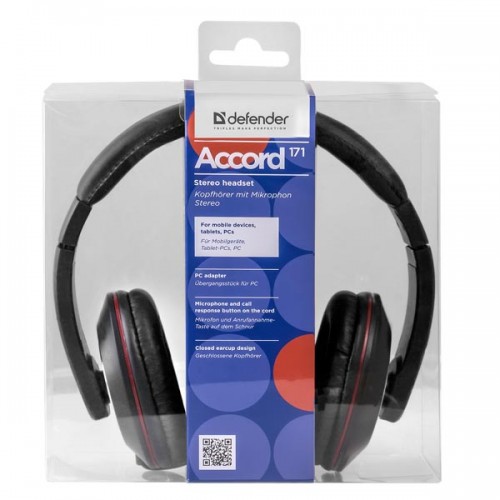Sluchátka Defender Accord 171 jsou výborná pro mobilní a přenosná zařízení. Díky své izolaci jsou perfektní na cesty.
