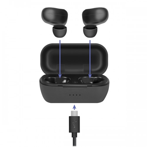 Defender Twins 638, sluchátka s mikrofonem, bez ovládání hlasitosti, černá, špuntová, BT 5.0, TWS, nabíjecí pouzdro typ bluetooth