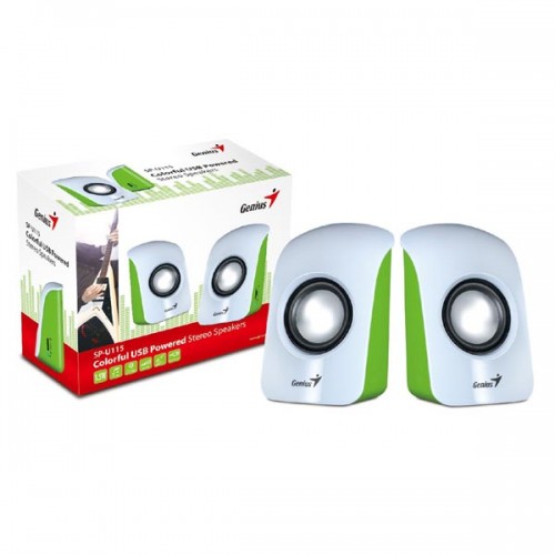 Genius reproduktory SP-U115, 2.0, 3W, bílo-zelené, regulace hlasitosti, stolní, 200Hz-18kHz