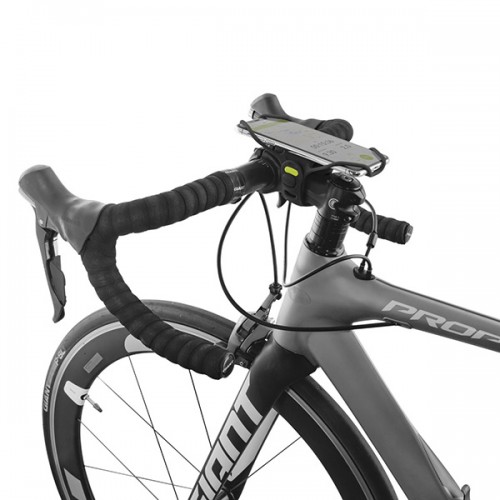 Držák je uzpůsoben pro telefony s úhlopříčkou 5.8 až 7.2 palců. Upevnění držáku na představec řídítek zvládnete během 10 sekund. Stačí jen upevnit řemínek držáku kolem představce a vstrčit telefon do rohů držáku. Držák je tímto pevně umístěn na představci řídítek a nepřetáčí se. Během přestávek si telefon z držáku snadno vyjmete a před cestou do držáku zase upevníte.