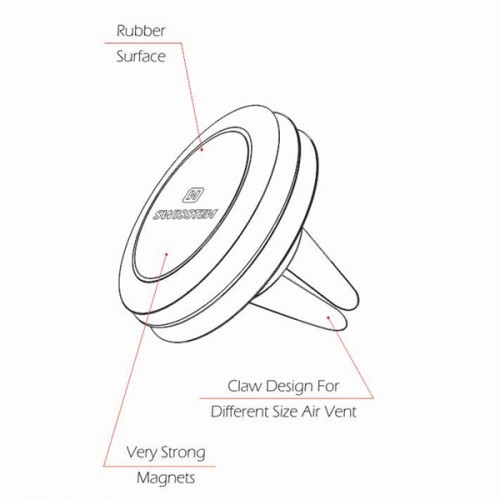 Magnetický držák mobilu(GPS) Swissten do auta, S-Grip AV-M4, černý, kov, do ventilace, 3.5" až 6", mobil