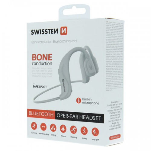 SWISSTEN Bezdrátová bluetooth sluchátka Bone conduction, mikrofon, ovládání hlasitosti, bílá, sportovní typ bluetooth