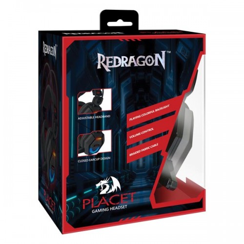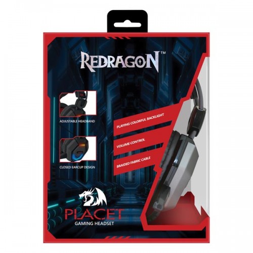 Redragon Placet herní sluchátka s mikrofonem, ovládání hlasitosti, černá, 2x 3.5 mm jack + USB