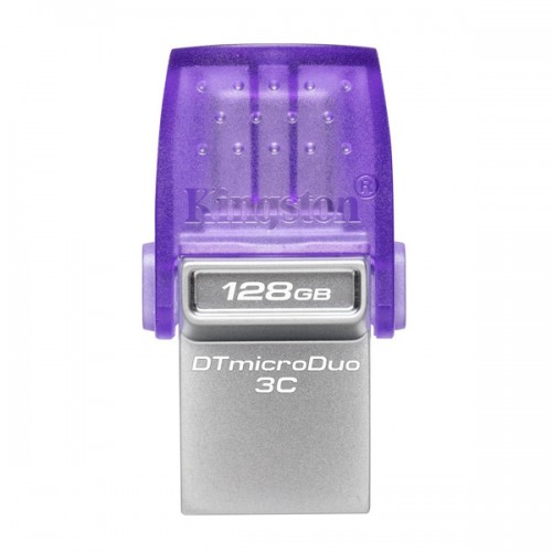 Kingston USB flash disk OTG, USB 3.0 (3.2 Gen 1), 128GB, Data Traveler microDuo3 G2, stříbrno-fialový, DTDUO3CG3/128GB, USB A / US