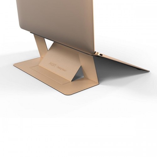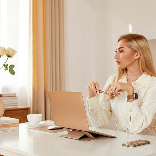 Podstavec pod notebook, tenký, s lepící plochou, 2 polohy, zlatý, skleněná vlákna, umělá kůže, 8 kg nosnost, ergo