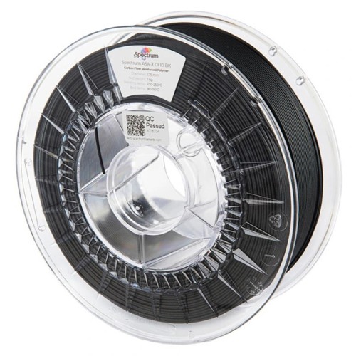 Uživatelům poskytují vlákno, které je odolné vůči vnějším vlivům, jako je sluneční záření (UV) a vlhkost (hydrolýza), s pevností v tahu přes 7,5 GPa a tepelnou odolností 101 °C. Spectrum ASA-X CF10 má zároveň nízkou smrštitelnost a je, neobvykle u technických materiálů se srovnatelnými vlastnostmi, snadno potisknutelný. To vše v kombinaci s karbonovým matným povrchem, který účinně maskuje vrstvy tištěných modelů, učinilo Spectrum ASA-X CF10 velmi oblíbenou volbou mezi komunitou 3D tisku.