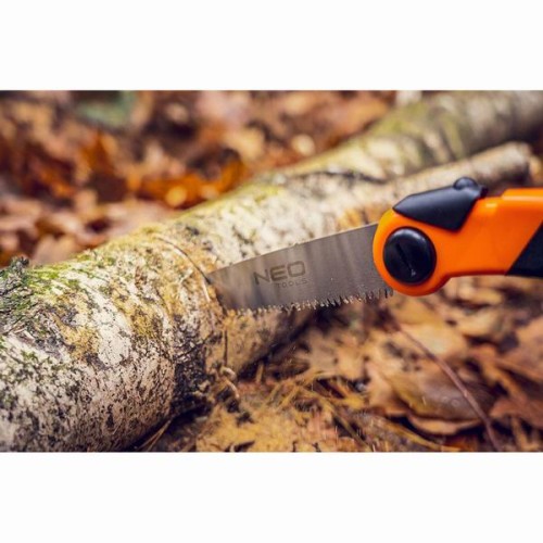 Ruční pila NEO bushcraft (ref. 63-120) se skládacím kotoučem 43 cm. Čepel je vyrobena z oceli SK4. Pila má dvě aretační polohy a tři řady zubů, díky čemuž se zvyšuje efektivita práce.
