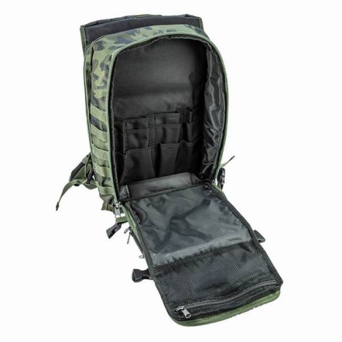 Pohodlný taktický batoh s prostornou hlavní kapsou. Batoh pojme a zajistí náklad 30 l. Pro pohodlí při skladování má 18 vnitřních a 4 další vnější kapsy na zip. Má nastavitelné ramenní popruhy, nastavitelné hrudní a bederní popruhy, zádové polštáře, boční a horní lemy a také další popruhy. Batoh je vyroben z 600D polyesteru. Jedná se o lehkou tkaninu, která se vyznačuje pevností a odolností. Navíc je odolný proti oděru, roztržení a dalším mechanickým vlivům.