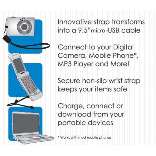 Toto poutko slouží nejen pro bezpečné zavěšení fotoaparátu či kamery za zápěstí, ale díky němu můžete propojit Vaše zařízení s PC a hned fotky nebo video prohlížet nebo uložit v PC či NB.