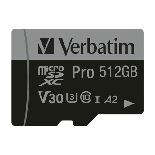 Verbatim paměťová karta MicroSD, 512GB, micro SDXC, 47046, UHS 3 (U3), s adaptérem