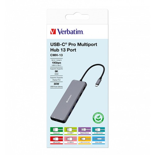 USB (3.2) hub 13-port, 32153, šedý, délka kabelu 20cm, Verbatim, 2x USB C, 6x USB A, 2x HDMI