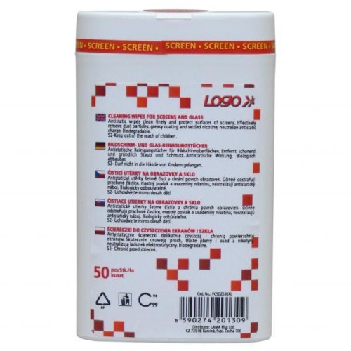 Čisticí trhací ubrousky na obrazovky, dóza, 50ks, Logo