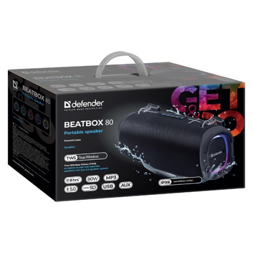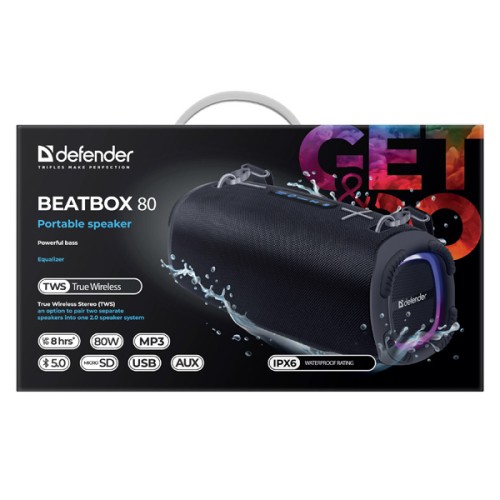 Defender Beatbox 80 je nejvýkonnější a největší model z rodiny voděodolných reproduktorů Defender, určený pro milovníky aktivního životního stylu a outdoorových aktivit.