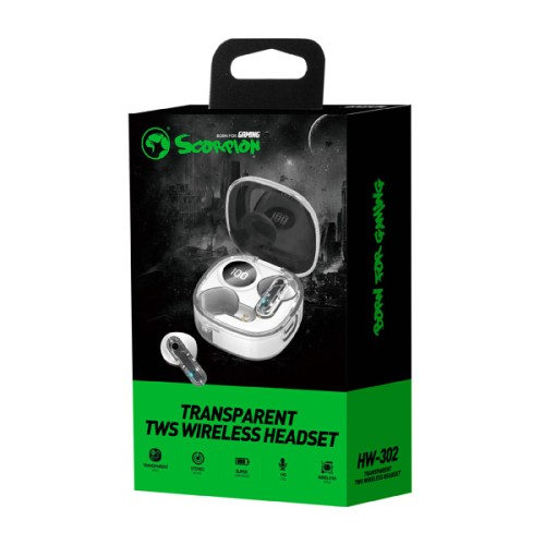 Marvo HW-302, TWS sluchátka, transparentní, USB-C