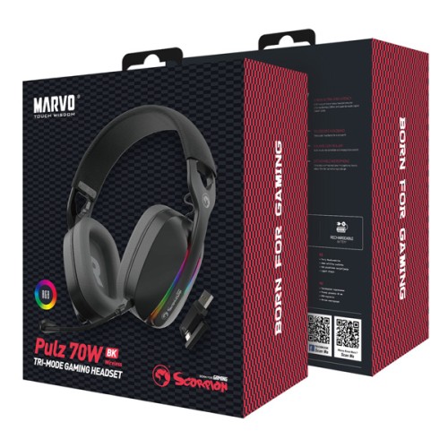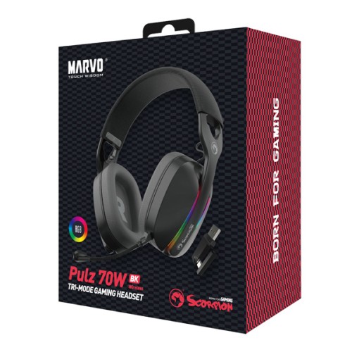 Hledáte sluchátka, která vám zajistí perfektní zážitek z hudby a her? Pak už nehledejte! Sluchátka Marvo Pulz 70W s náhlavní konstrukcí a inovativní funkcí Tri-mode vám toto všechno zajistí. Vyberte si z 2.4 GHz bezdrátového připojení pro stabilní a nízko-latenciální signál, Bluetooth 5.3 pro bezdrátové streamování z mobilního zařízení, nebo klasického 3.5mm jacku (4-pin) pro kompatibilitu s počítači a herními konzolemi.