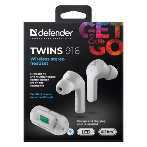 Defender Twins 916 mají vestavěný mikrofon s potlačením šumu, který zajišťuje, že vaše hovory budou vždy jasné a bez rušivých zvuků z okolí. Sluchátka jsou odolná proti potu a stříkající vodě, což je činí ideálními pro sport a aktivní životní styl.
