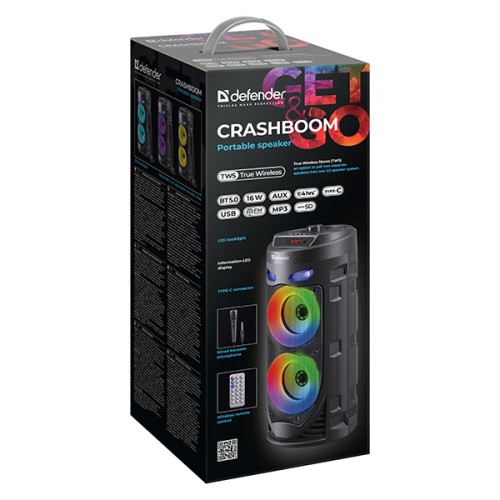 Defender Crashboom je skvělým řešením pro každého, kdo hledá výkonný a multifunkční přenosný reproduktor. Díky jeho kompaktní velikosti, kvalitnímu zvuku a široké škále funkcí se stane nepostradatelným společníkem pro každou příležitost.