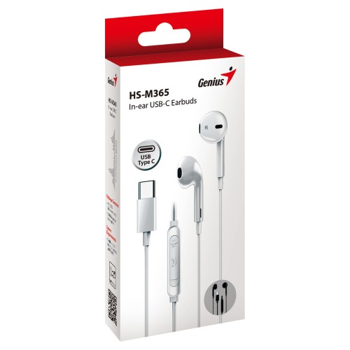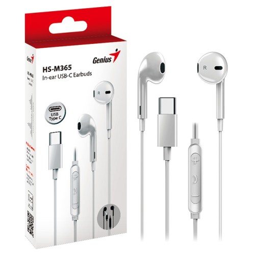 Genius HS-M365, sluchátka s mikrofonem, bílá, 2.0, špuntová, USB Type-C