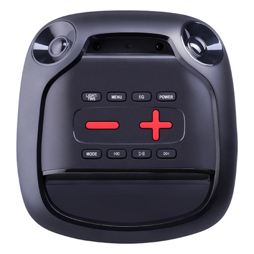 Přenosný Bluetooth reproduktor je robustní a vyrobený z kvalitních materiálů, v kombinaci s vysoce kvalitním zvukem dokáže zajistit skvělou atmosféru na večírku, v tělocvičně, při sportu, na staveništi, v přírodě nebo doma či při sledování filmu. Baterie s kapacitou 3 600 mAh zajistí, že můžete hrát po dlouhou dobu. Pomocí speciálního ovladače můžete reproduktor naladit na danou hudbu/film a podle toho upravit hlasitost. Na horní straně reproduktoru najdete pohodlné držadlo pro přenášení reproduktoru na libovolné místo a přihrádku pro telefon/tablet.