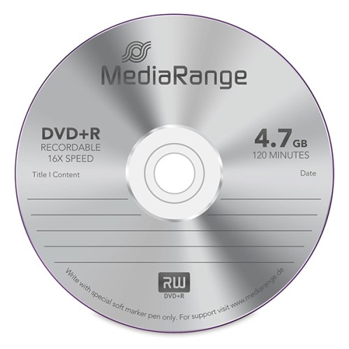 MediaRange DVD+R, mr443, 4.7GB, 16x, spindle, 100-pack, bez možnosti potisku, 12cm, pro archivaci dat
