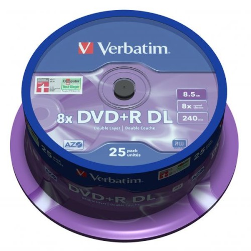 Verbatim DVD+R DL, Double Layer Matt Silver, 43757, 8.5GB, 8x, spindle, 25-pack, 12cm, pro archivaci dat