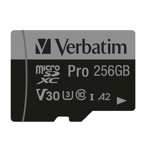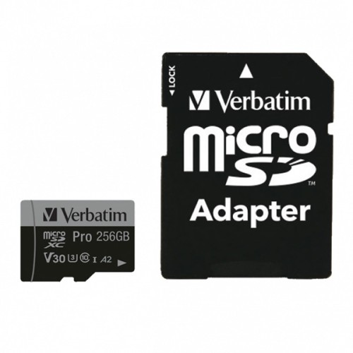 Verbatim paměťová karta MicroSD, 256GB, micro SDXC, 47045, UHS 3 (U3), s adaptérem