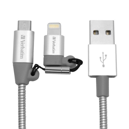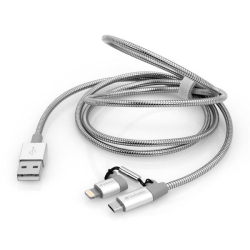 Verbatim USB kabel (2.0), USB A samec - microUSB samec + Apple Lightning samec, 1m, stříbrný, box, 48869, 2 in 1 - nastavitelná ko