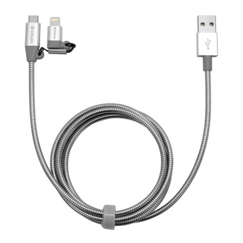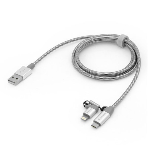 Verbatim USB kabel (2.0), USB A samec - microUSB samec + Apple Lightning samec, 1m, stříbrný, box, 48869, 2 in 1 - nastavitelná ko