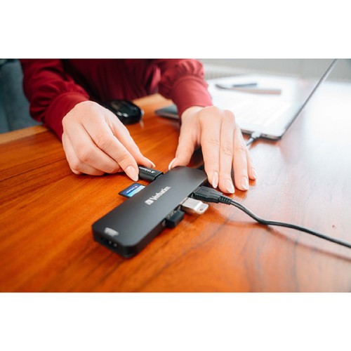 USB (3.2) hub 8-port, 32151, šedá, délka kabelu 15cm, Verbatim, 1x USB C, 3x USB A, 2x HDMI, 1x SD 3.0