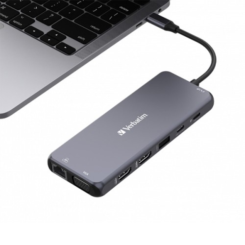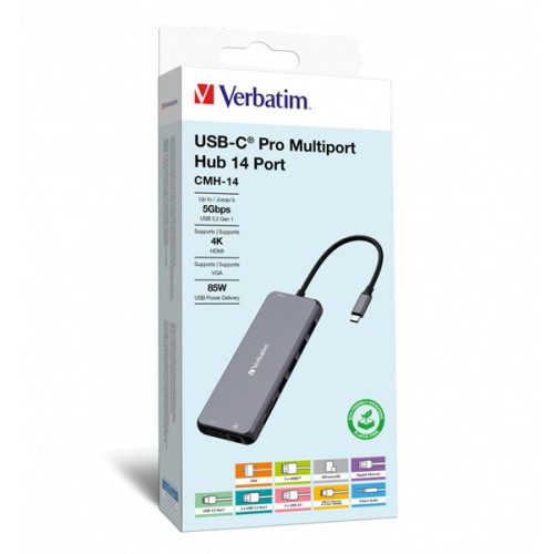 USB (3.2) hub 14-port, 32154, šedý, délka kabelu 15cm, Verbatim, 2x USB C, 5x USB A, 2x HDMI, čtečka SD/micro SD