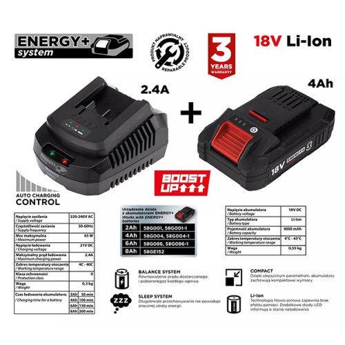 Sada baterie a nabíječky, 58GE132-1, 4 ah baterie + nabíječka, BOOST UP, GRAPHITE